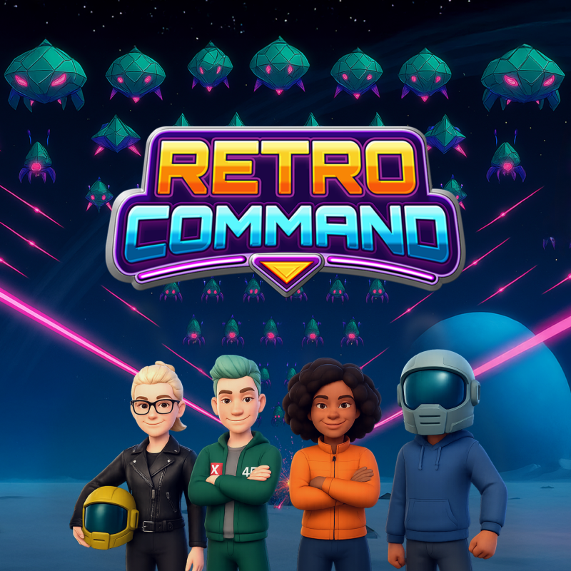 Squad up for retro arcade action! Blast alien swarms, defend your base and dominate the leaderboard!
